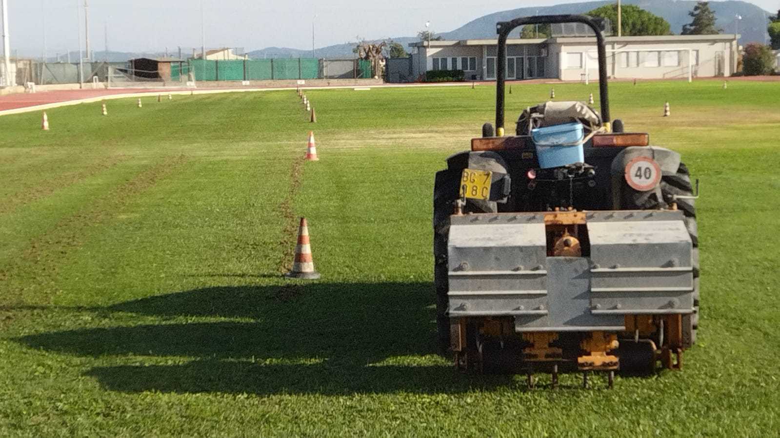 Le operazioni di manutenzione del manto erboso che effettuiamo sono lo sfalcio, la tracciatura, la manutenzione dell’ impianto di irrigazione, la concimazione, l’arieggiatura , il carotaggio la trasemina e i trattamenti fitosanitari volti a prevenire e/o curare eventuali malattie del manto.